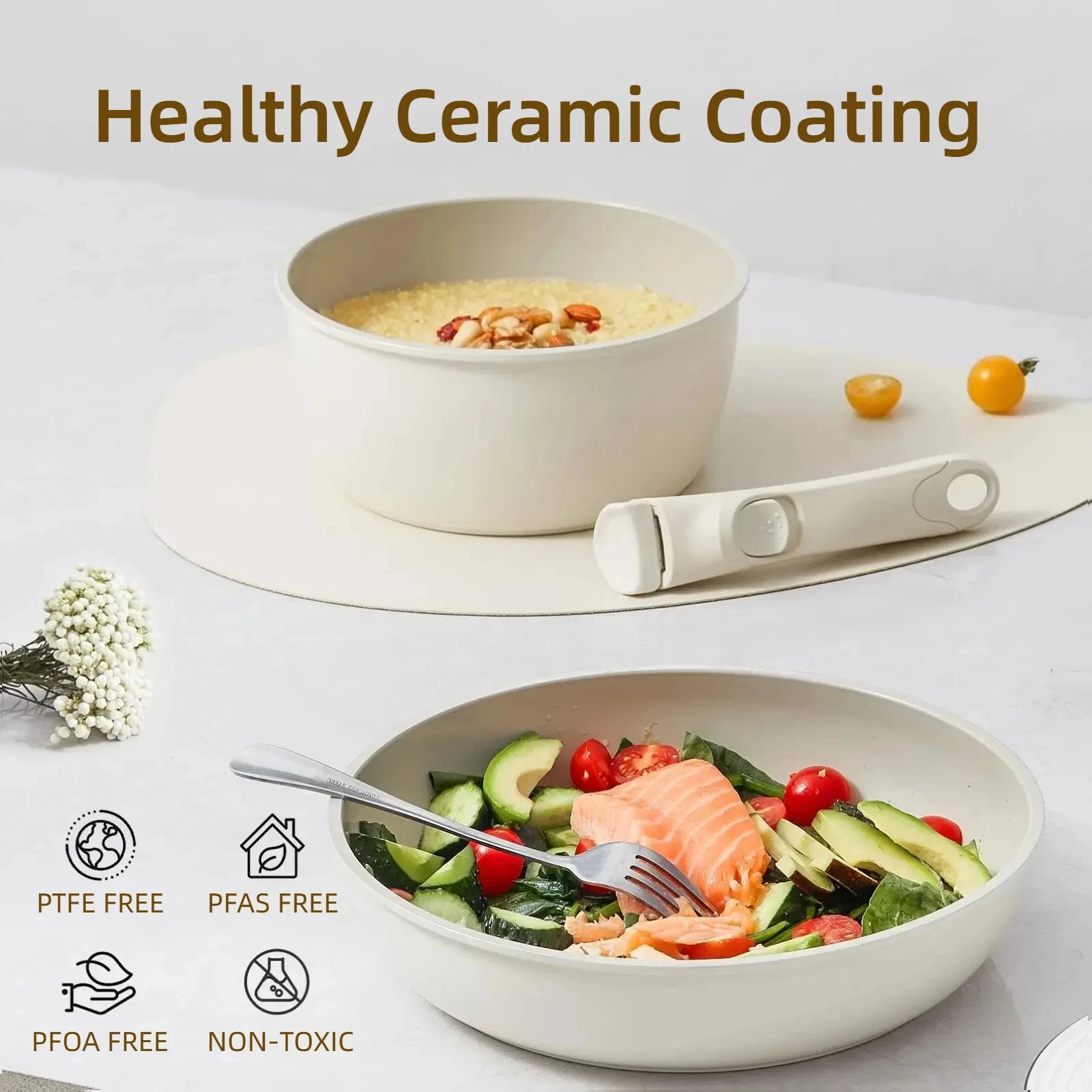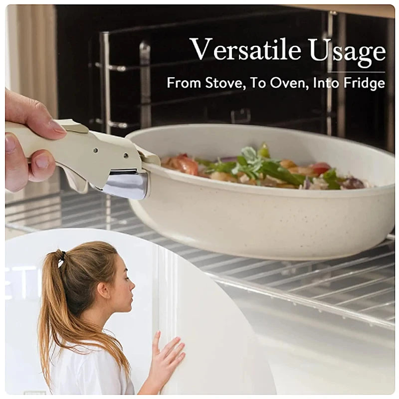 Experimente la combinación perfecta de comodidad moderna y elegante menaje de cocina con el juego de utensilios de cocina de granito StoneChef™ de 15 piezas, antiadherente y con mango extraíble . Diseñado tanto para cocineros aficionados como para familias ocupadas, este juego de diseño inteligente le permite cocinar, servir y guardar, todo con los mismos utensilios. El innovador sistema de mango extraíble ahorra espacio y simplifica la transición de la placa de cocina al horno y a la mesa. Con una superficie antiadherente de granito premium, disfrutará de comidas más saludables y una limpieza sin esfuerzo. No son solo utensilios de cocina, sino una mejora en su estilo de vida.